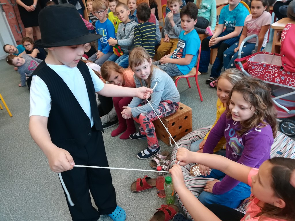Malí kouzelníci a kouzelnice předvedli ostatním žákům, jak vykouzlit kuličky a opět je nechat zmizet, že lze vytvořit uzlík na provázku, aniž by ho někdo zavázal a opačně, že umí uhádnout druh karty, kterou jste si vytáhli a spoustu dalších úžasných triků. Svou šikovností, nápaditostí, vtipem a odvahou vše předvést pobavili všechna tři oddělení družiny.