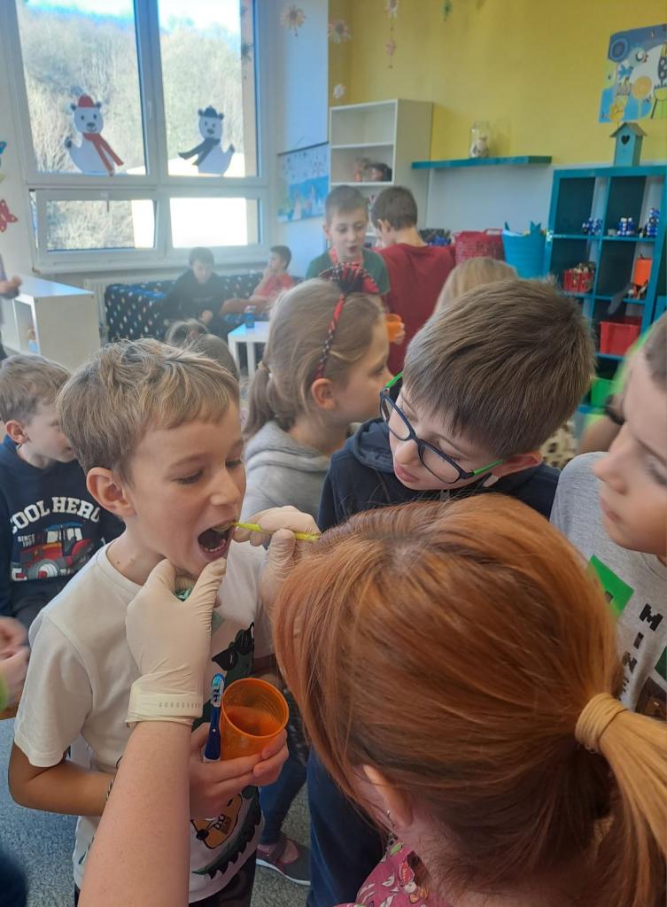 Na přednášce "Zdravé zoubky" se žáci ze školní družiny seznámili se správnou technikou čištění zubů, pomůckami a vhodnými přípravkami k hygieně ústní dutiny.