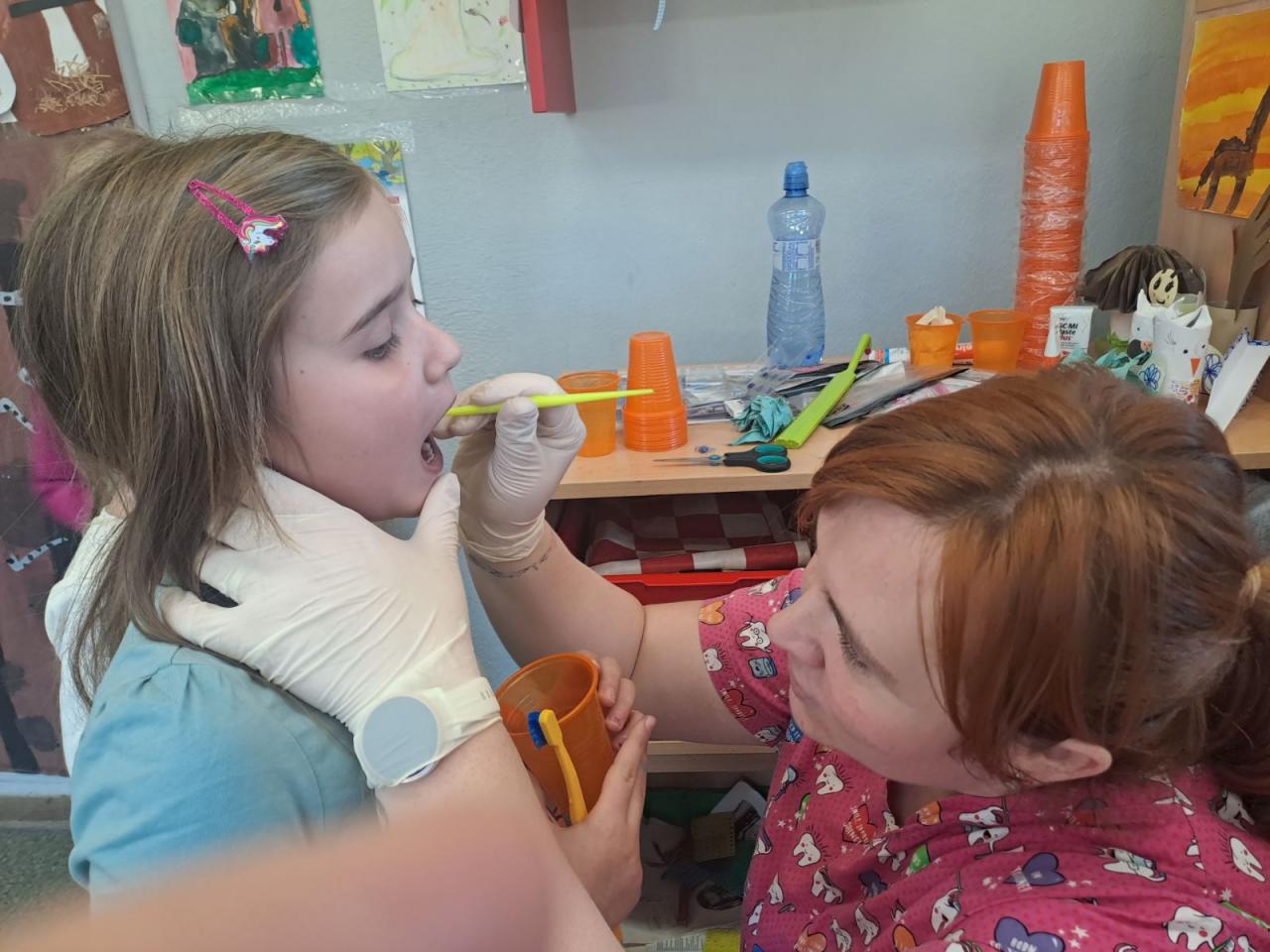 Zároveň si vyzkoušeli pomocí tablety na rozpoznání plaku, zda si své zuby vyčistili důkladně. Po tomto školení teď všichni ví, jak pečovat o své zoubky a předcházet zubnímu kazu.
