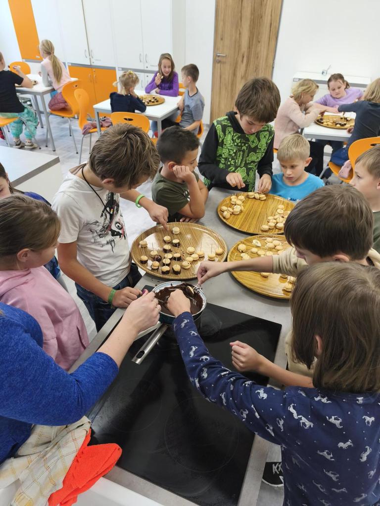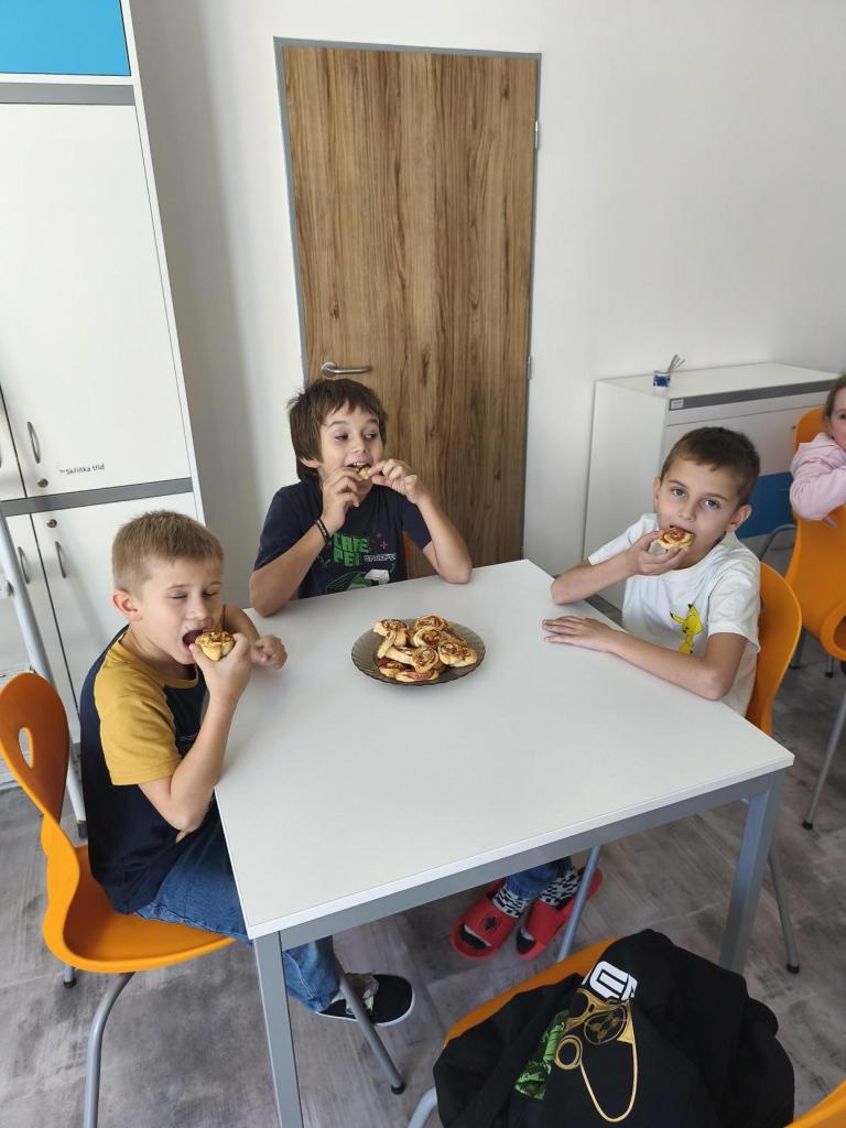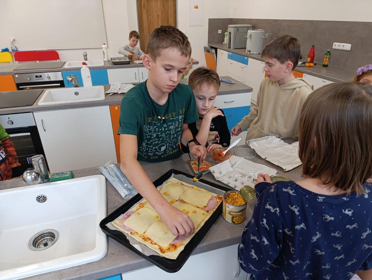 V kroužku vaření to voní na všechny strany. Děti si zkoušejí přípravu jednoduchých pokrmů a s radostí si své hotové dobroty také sní.