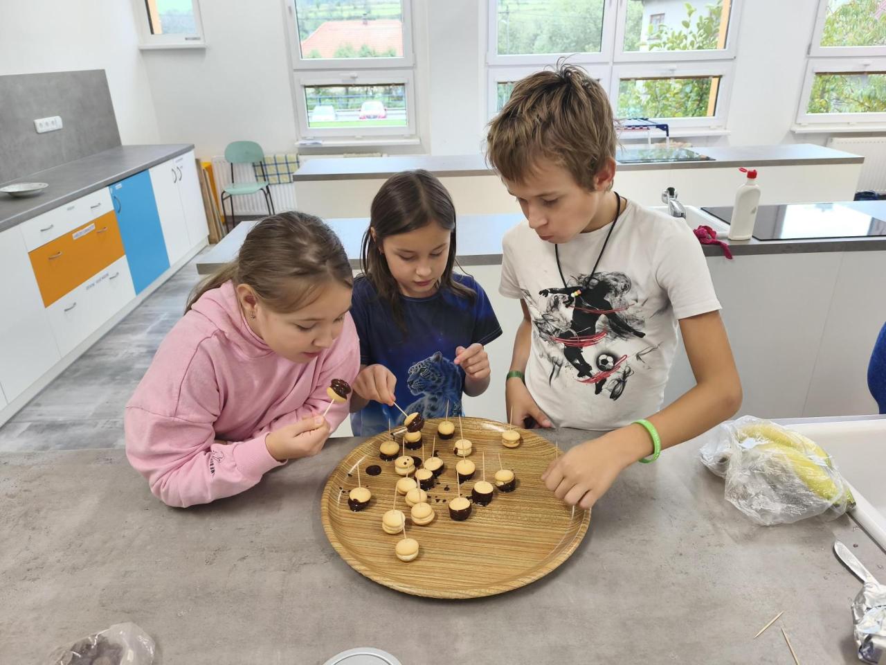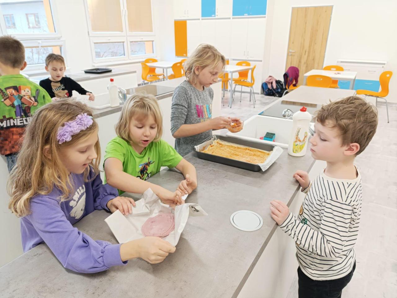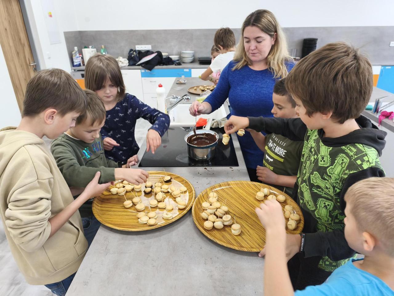 V kroužku vaření to voní na všechny strany. Děti si zkoušejí přípravu jednoduchých pokrmů a s radostí si své hotové dobroty také sní.