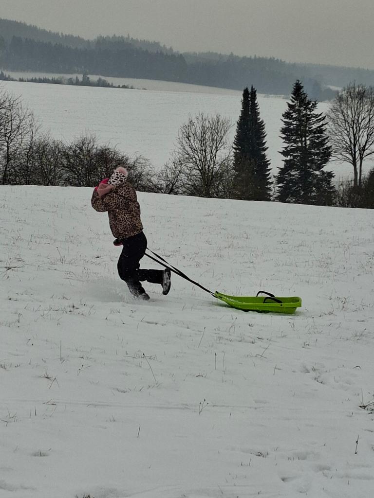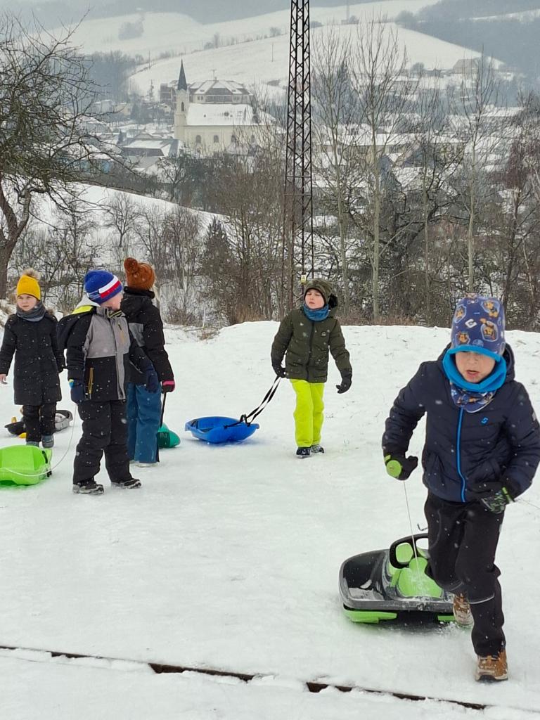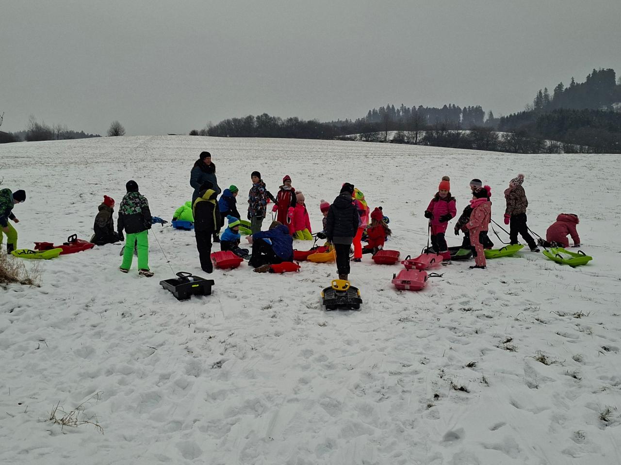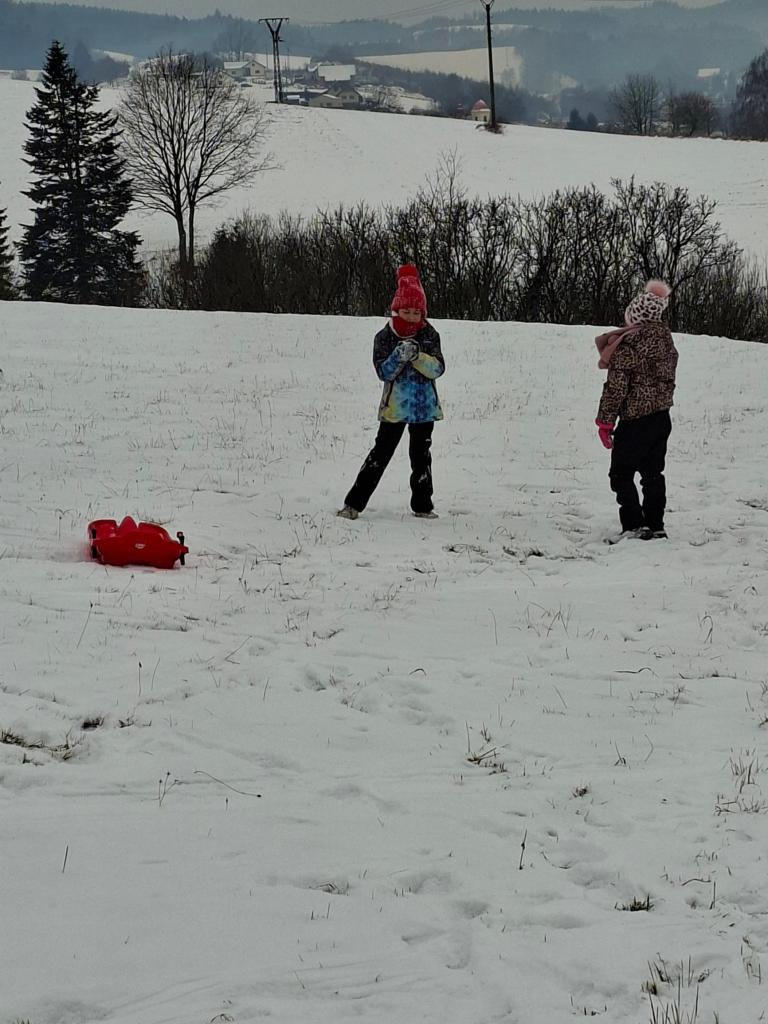 Děti z naší školní družinky si naplno užily pravou zimní atmosféru při bobování na nedalekém kopci. Hned po obědě se teple oblékly, nasadily čepice a rukavice a s nadšením vyrazily vstříc sněhovému dobrodružství. Zimní odpoledne na kopci se opravdu vydařilo a už teď se těšíme na další sněhové radovánky.
