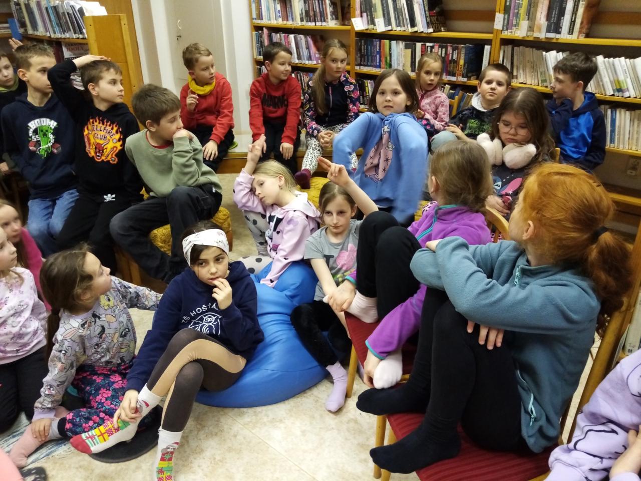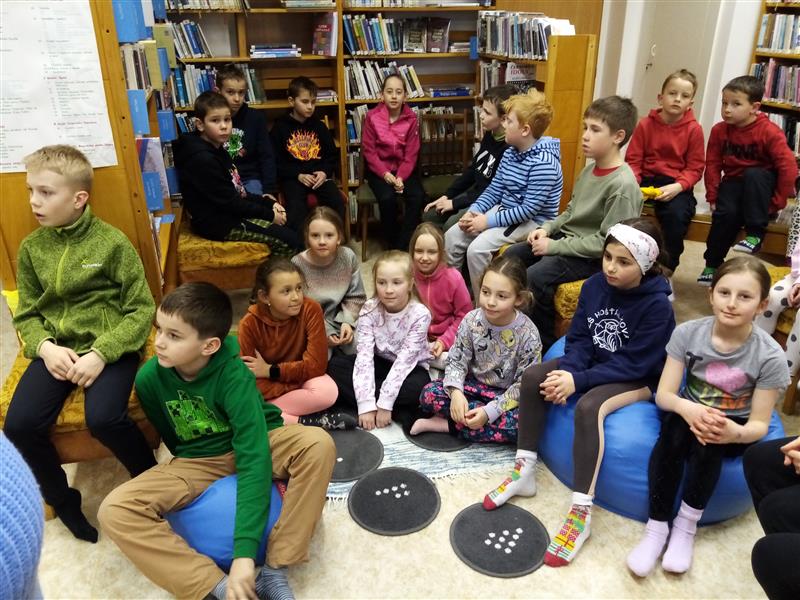 Součástí programu byla také návštěva obecní knihovny v Hošťálkové. Zde si pro nás paní knihovnice připravily zajímavý program, jenž připomínal 100leté výročí narození známého autora dětských knih a scénářů k filmům – Miloše Macourka.