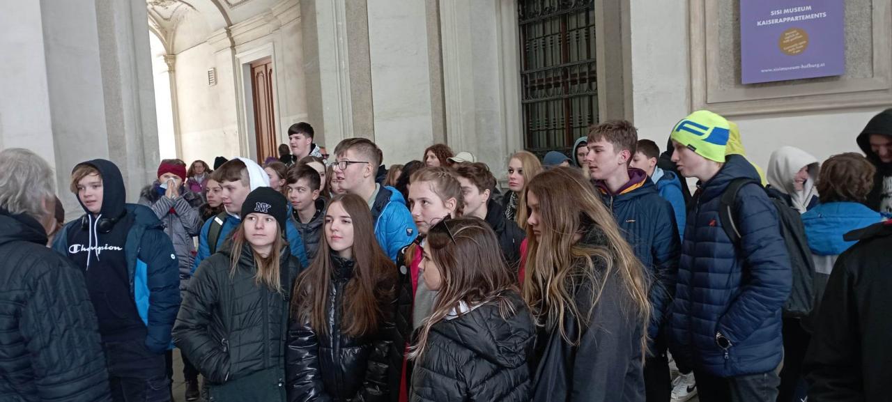 Odjezd v 5:30 hod. někteří chvíli rozdýchávali, ale nakonec byli všichni včas u školy, aby naše cesta mohla začít. Ráno v autobuse bylo až do Mikulova ospalé. Na poslední zastávce na našem území jsme využili služeb čerpací stanice a místního wc. Ve vzpomínkách děvčat určitě zůstane hláška paní toaletářky: „Čtěte tu ceduli! Počkej na zelenou!“ Za další zhruba hodinu a půl jsme zastavili v Schönbrunnu. Na nádvoří byly stánky velikonočních trhů, teď jsme ale zamířili k císařskému schodišti a do zámeckých zahrad. Zastavili jsme se u Neptunovy fontány a vyšlápli kopec až ke Gloriettě. Pro Habsburky to prý ale byl celodenní výlet. Nahoře jsme dostali rozchod a asi za hodinu se sešli u hlavní brány. U stánků jsme si koupili veliké preclíky a také suvenýry.